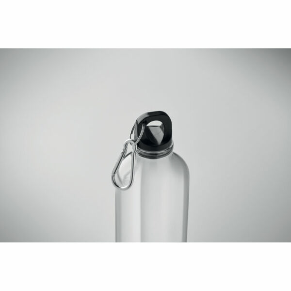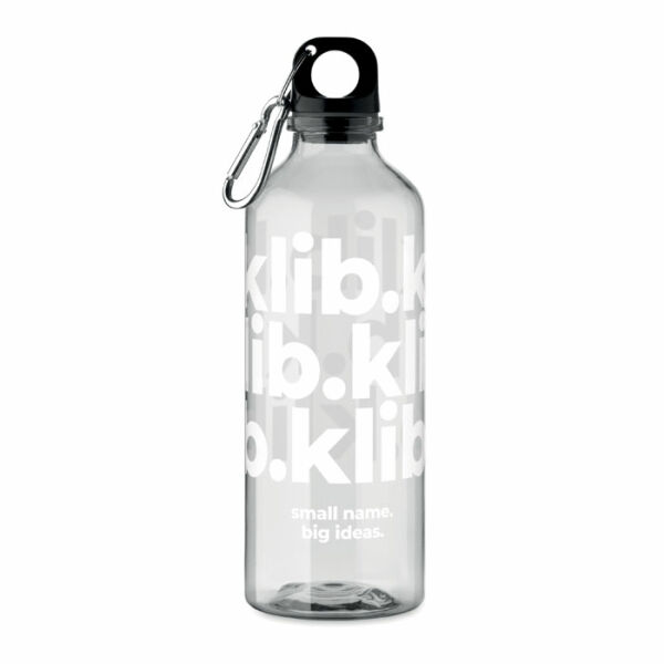 Drinkfles in RPET met karabijnhaak. Inhoud: 500ml.
