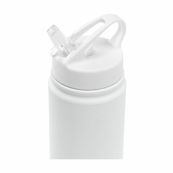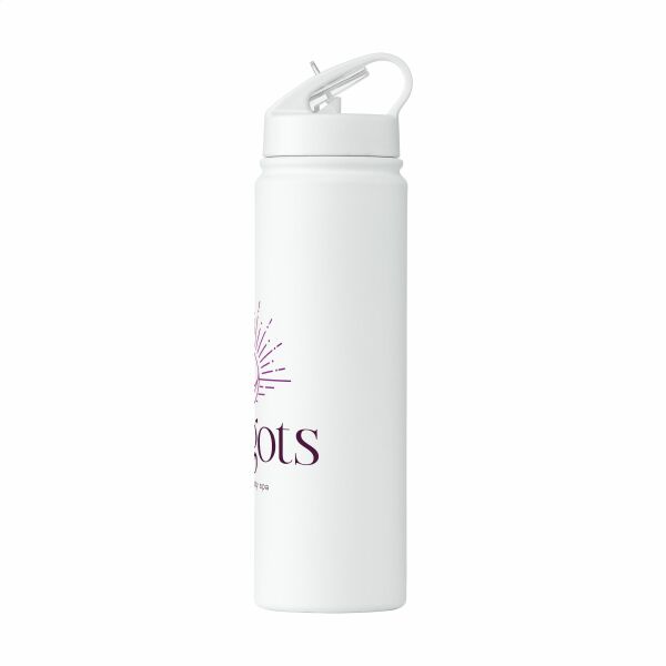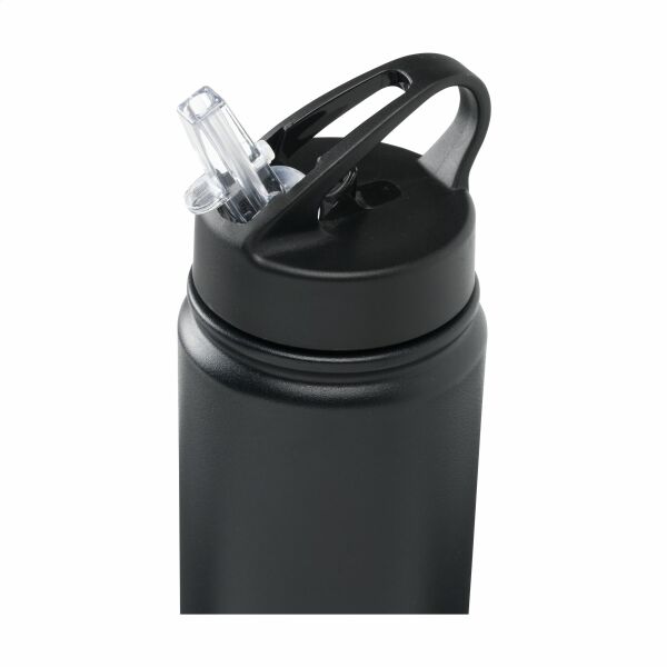 Enkelwandige waterfles van gerecycled RVS. Afgewerkt met een mooie matte coating. De elegante fles is voorzien van een PP schroefdop in een matchende kleur, een inklapbaar mondstukje en een afsluitbaar rietje. Dankzij de handige draagring neem je de fles gemakkelijk mee. Geschikt voor koude dranken en ideaal tijdens sportieve activiteiten. Niet vaatwasserbestendig. RCS-gecertificeerd. Totaal gerecycled materiaal: 73%. Inhoud 900 ml. RVS kan vele malen gerecycled worden terwijl de kwaliteit van het materiaal grotendeels behouden blijft. Door het gebruik van gerecycled RVS worden minder nieuwe grondstoffen gebruikt. Dit betekent minder energieverbruik en minder gebruik van water. Per stuk verpakt.