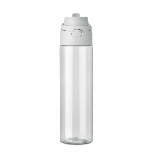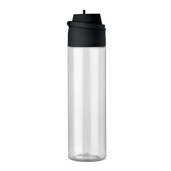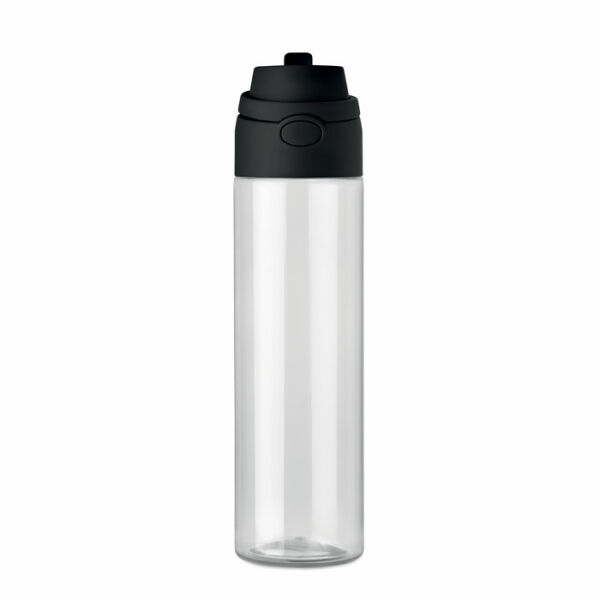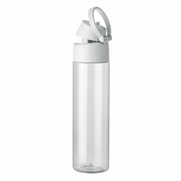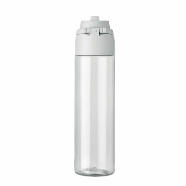 RPET fles met 2-in-1 drink- en rietjesdop met handvat. Lekvrij. Inhoud: 700ml.