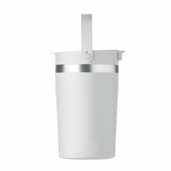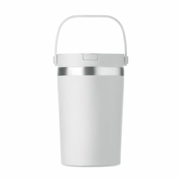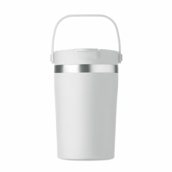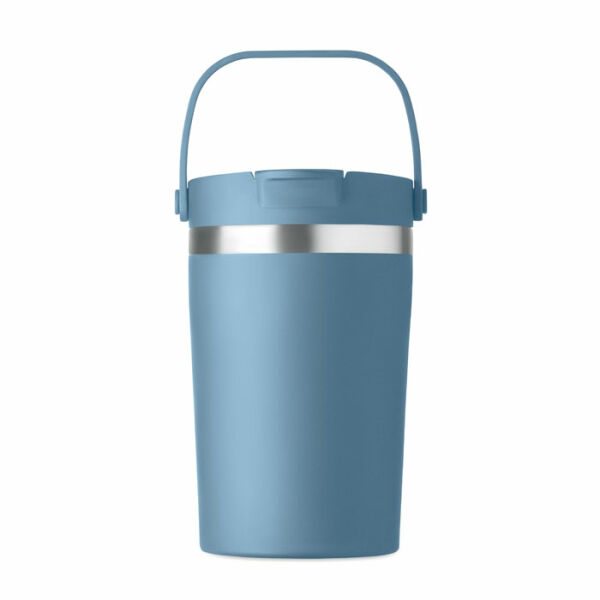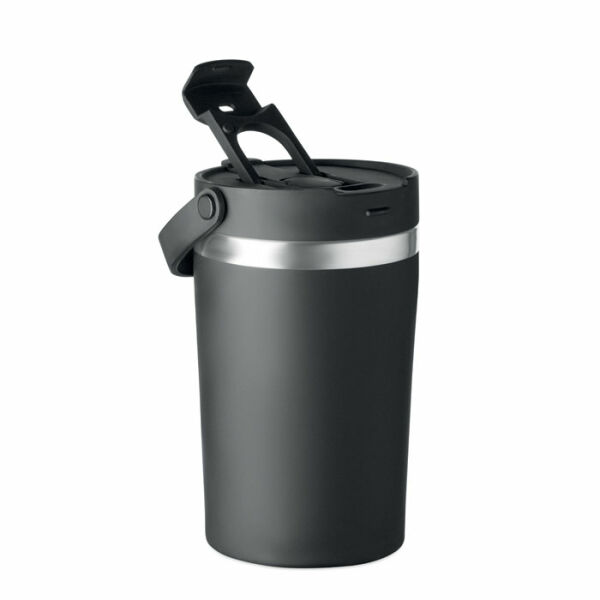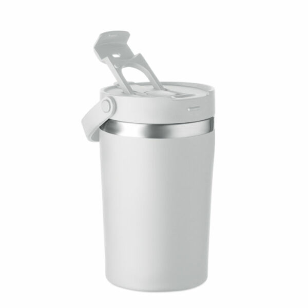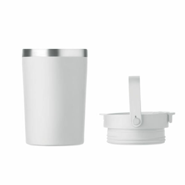 Dubbelwandige gerecyclede roestvrijstalen (90% gerecycled roestvrij en 10% roestvrij staal) drinkbeker met PP 2-in-1 drink- en rietjesdop. Lekvrij en duurzaam. Inhoud: 350ml.